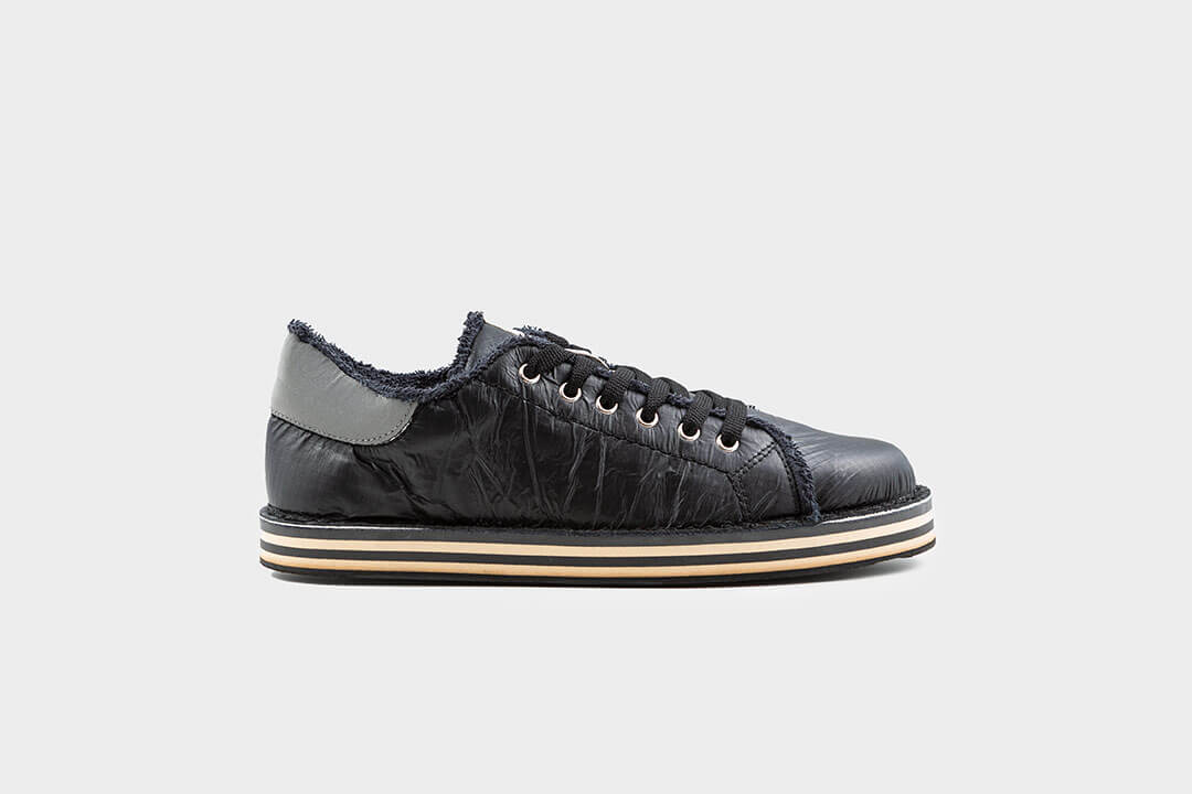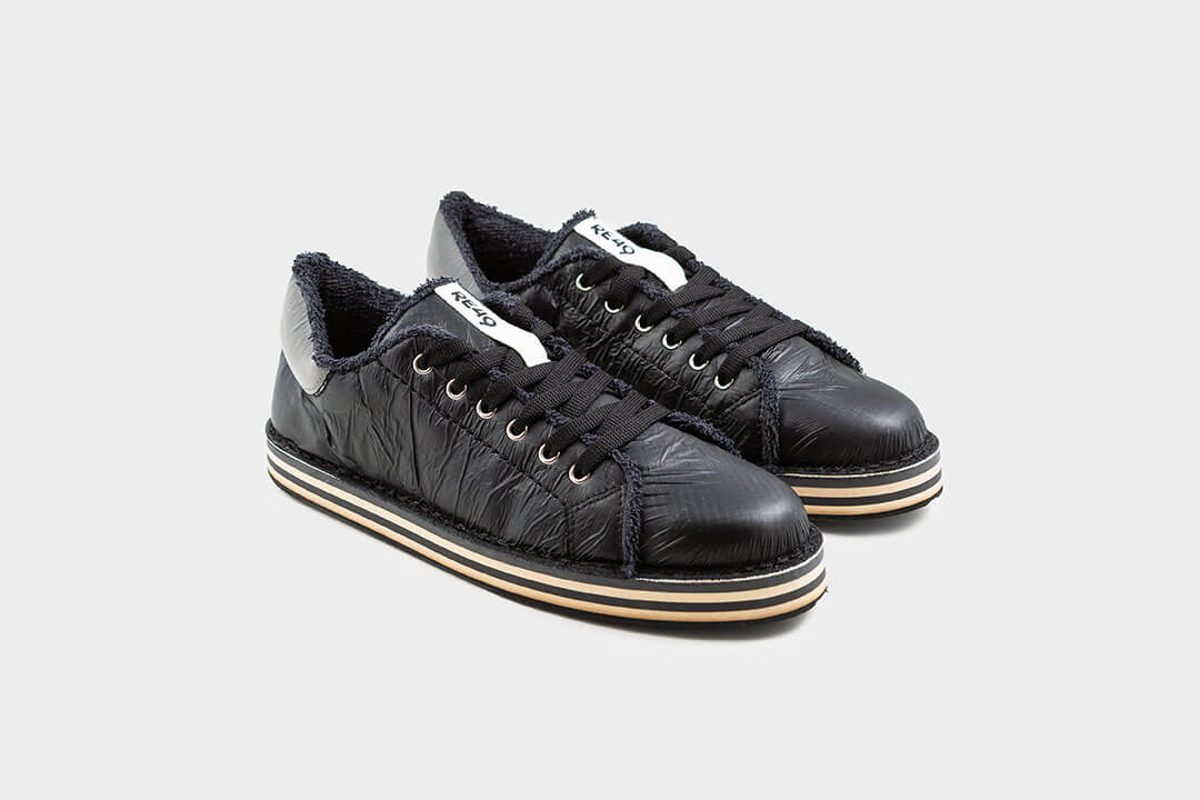 LIFESTYLE SPIN TECH RE49 è una sneaker casual streetwear. È realizzata con lo spinnaker, la sottile e resistente vela a pallone delle imbarcazioni. L’effetto stropicciato è la caratteristica che la rende unica. La soletta in microfibra e la fodera interna sono in morbida spugna di cotone riciclata dagli asciugamani dismessi degli hotel. La suola bicolore in pneumatico rende le lifestyle RE49 contemporanee e originali. Tutte le scarpe RE49 sono realizzate a mano in Italia, nel nostro laboratorio di Gonars in provincia di Udine.