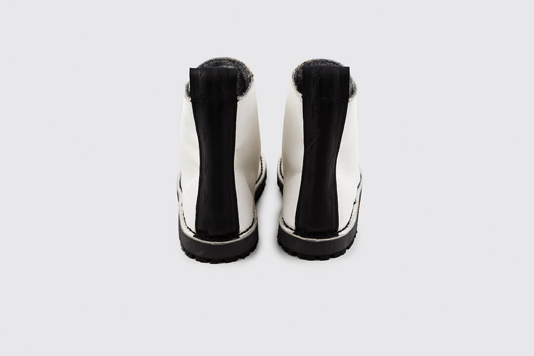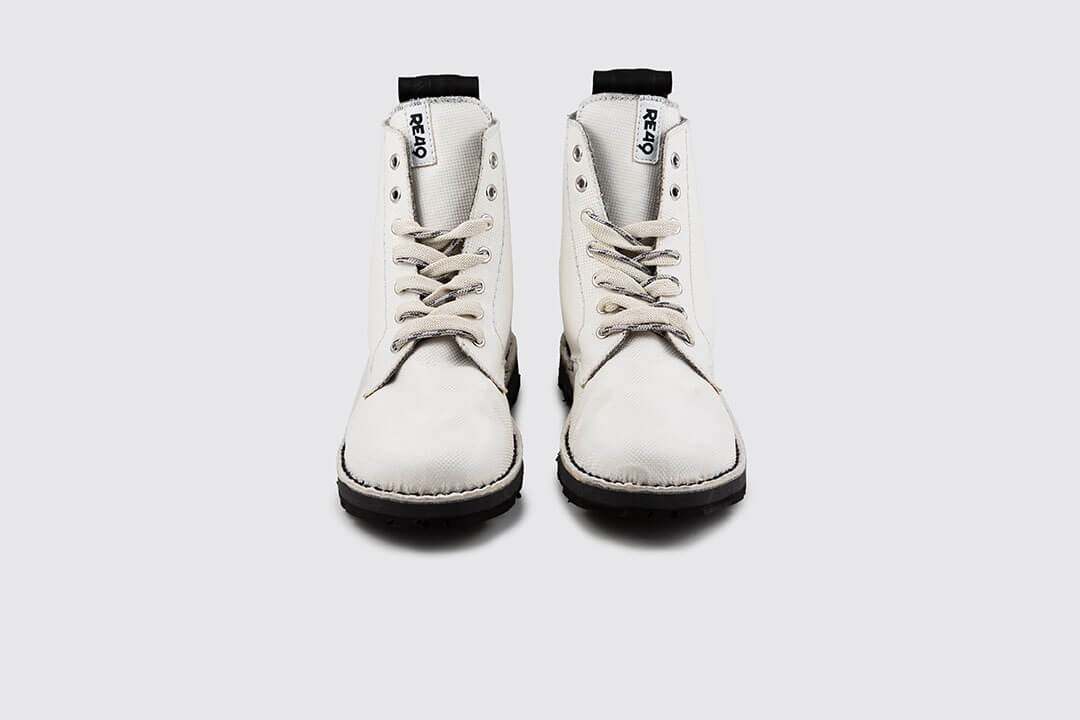 STAGE SAIL RE49 è un anfibio dal design autentico e alternativo. Realizzato con il dacron, la vela delle imbarcazioni, un materiale resistente e flessibile che ricicliamo e trasformiamo in tomaia. La soletta in microfibra e la fodera interna sono in morbida spugna di cotone riciclata dagli asciugamani dismessi degli hotel. La suola in pneumatico rende le Stage RE49 contemporanee e originali. Tutte le scarpe RE49 sono realizzate a mano in Italia, nel nostro laboratorio di Gonars, in provincia di Udine.